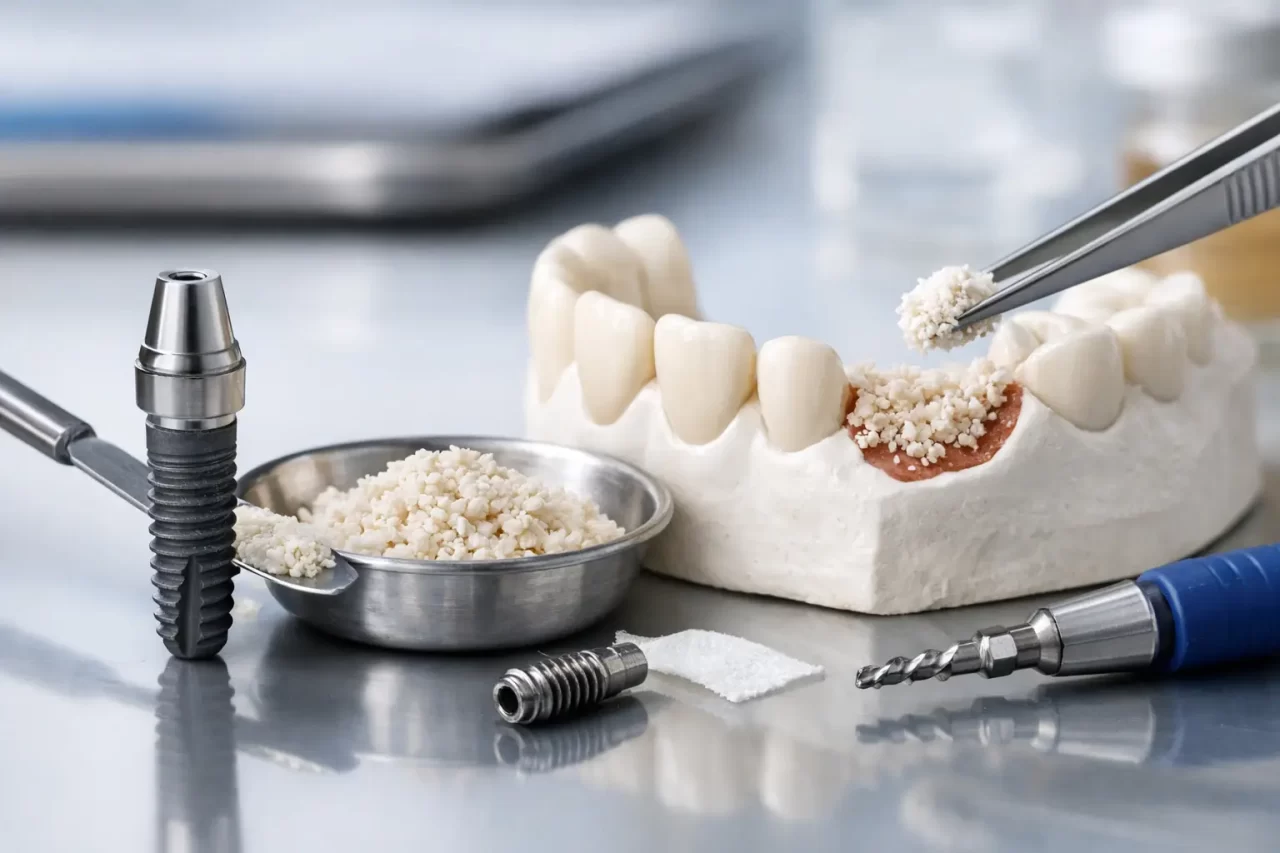 Conta anche il tipo di innesto. Non tutti gli innesti ossei sono uguali, e non tutti hanno gli stessi tempi biologici. Alcuni materiali fungono da supporto per la rigenerazione e vengono gradualmente sostituiti dall’osso del paziente; altri mantengono più a lungo il volume. La scelta non si basa solo sulla velocità, ma sul risultato che si vuole ottenere nel medio e lungo periodo.